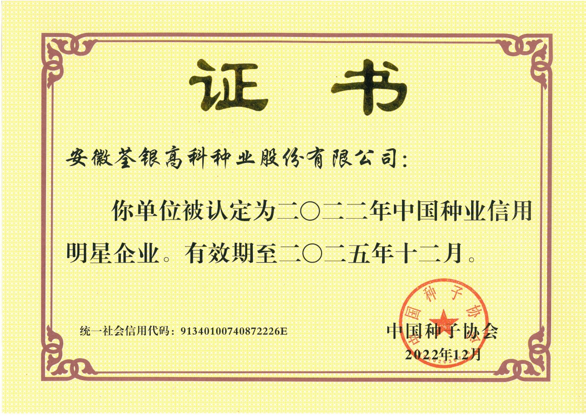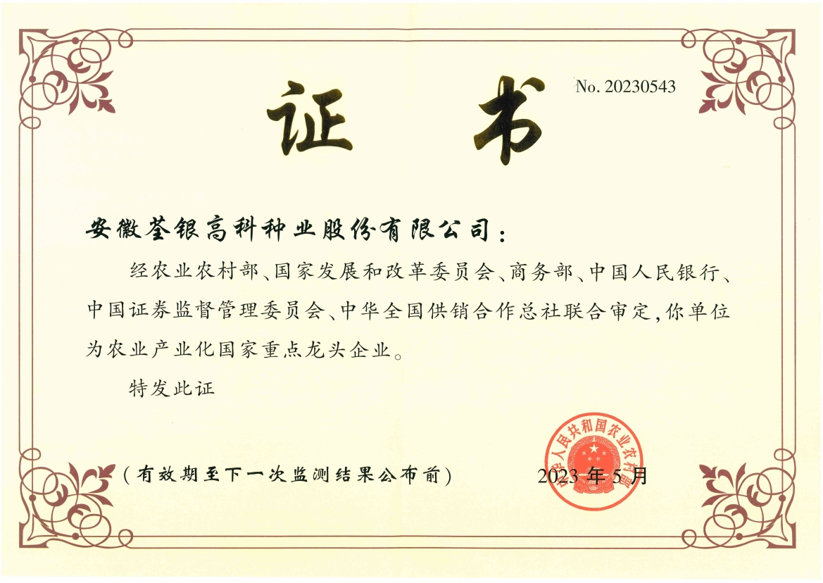 安徽荃銀高科種業(yè)股份有限公司是一家“以種業(yè)為核心、農(nóng)業(yè)服務為延伸、探索和創(chuàng)新農(nóng)業(yè)多元化發(fā)展”的現(xiàn)代高科技種業(yè)上市公司,證券代碼:300087。公司注冊資金9.47億元,系“中國種業(yè)領(lǐng)軍企業(yè)、農(nóng)業(yè)產(chǎn)業(yè)化國家重點龍頭企業(yè)、國家高新技術(shù)企業(yè)、農(nóng)業(yè)部首批農(nóng)作物種子育繁推一體化企業(yè)、中國種業(yè)信用明星企業(yè)"。在國內(nèi)控股子公司20多家,在國外設(shè)立分支機構(gòu)4家,良種銷售至全國20多個省(市、區(qū)),出口覆蓋20多個國家與地區(qū),種業(yè)綜合實力、雜交水稻研發(fā)、推廣及海外業(yè)務規(guī)模均居全國種子企業(yè)前2位。